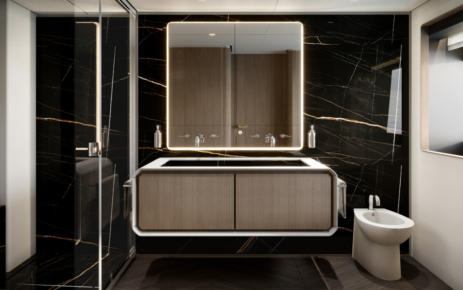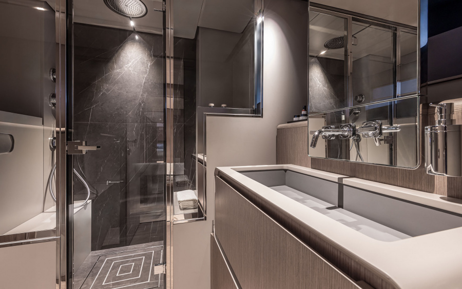 Featuring a fast displacement hull, the yacht offers efficient cruising over long distances, with the ability to travel up to 1200 nautical miles at economical speed. Spacious exterior areas, including a customizable cockpit and the signature All-Season Terrace, create a seamless connection with the sea, offering a unique onboard lifestyle in any weather conditions.